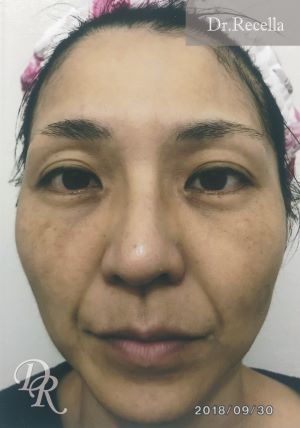 30代半ばからのほうれい線。強い日差しの影響で大きなシミが両頬に色濃く目立つように感じお悩みのお客様。